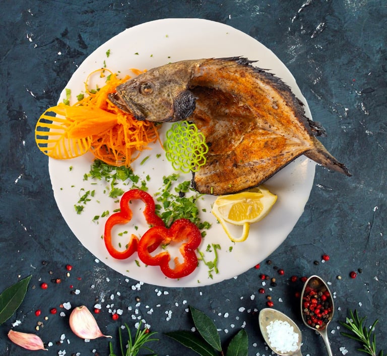 نقوم بتحضير مجموعة متنوعة من المأكولات البحرية لدينا بأفضل الطرق والمكونات الطازجة. نؤمن بأهمية تقديم الأطعمة الصحية واللذيذة لعملائنا، ولذلك نحرص على اختيار أفضل أنواع الأسماك والمأكولات البحرية الطازجة. نستخدم تقنيات الطهي المتقدمة لتحضير الأطباق بشكل مثالي، مع الاهتمام بحفظ نكهتها الطبيعية وقيمتها الغذائية بتشكيلة واسعة من الأطباق البحرية، العديد من الأصناف الأخرى لنقدم تجربة طعام مميزة ومرضية لعملائنا، ونضمن لكم جودة وطعمًا لا مثيل لهما في كل وجبة